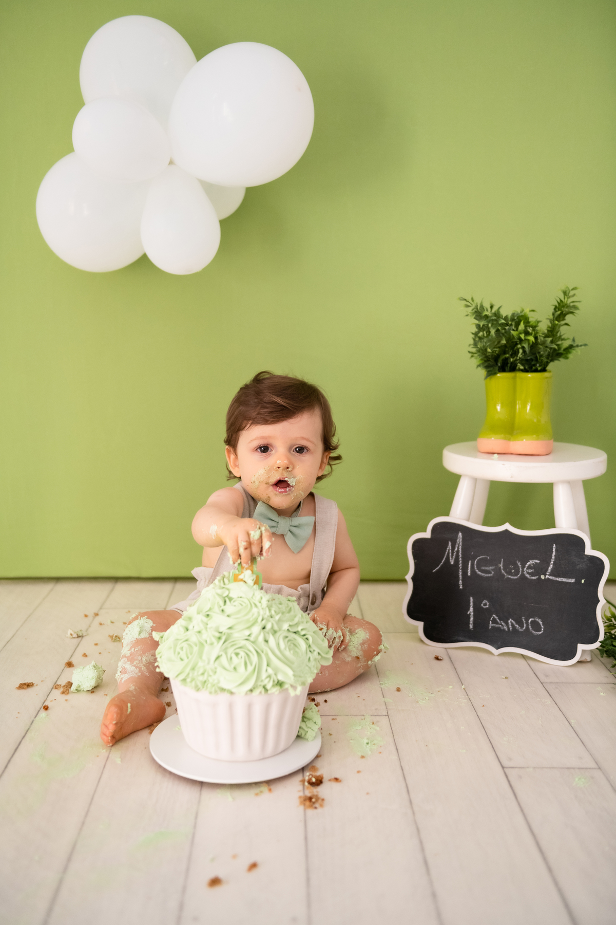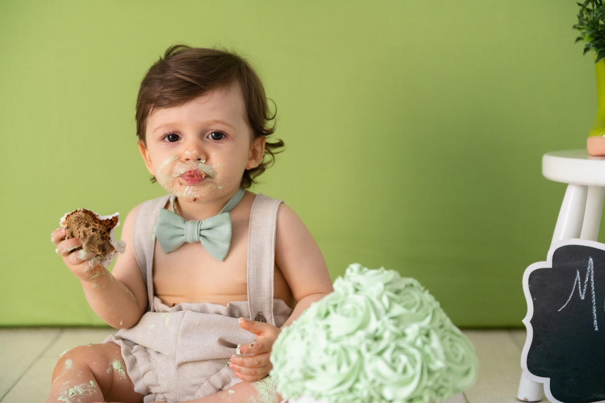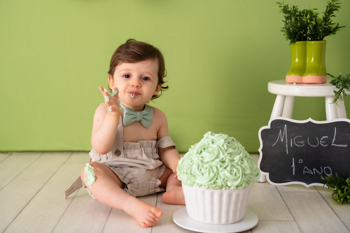 Aí a mamãe falou que faria o smash para comemorar o primeiro ano dele, já que com a pandemia não haveria um evento grande. E o ensaio não foi diferente! Ele chegou com aquele sorriso lindo e cheio de charme!
